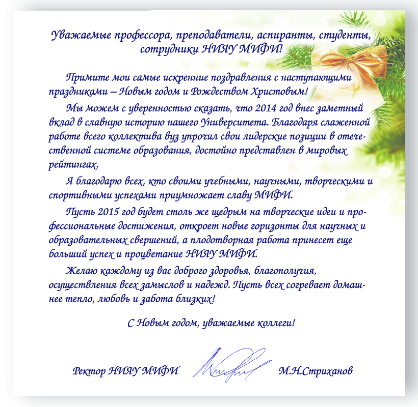 Поздравление ректора НИЯУ МИФИ М.Н.Стриханова с Новым Годом!