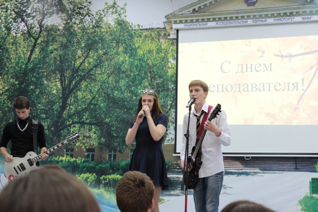Студенты ТИ НИЯУ МИФИ приготовили концертную программу, где в своих номерах от всей души пожелали всем преподавателям и сотрудникам ТИ НИЯУ МИФИ доброго здоровья, благополучия, а также неустанного поиска истины и знания, взаимопонимания в коллективе и благодарных, любознательных студентов!