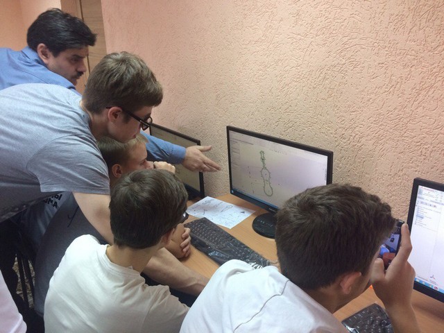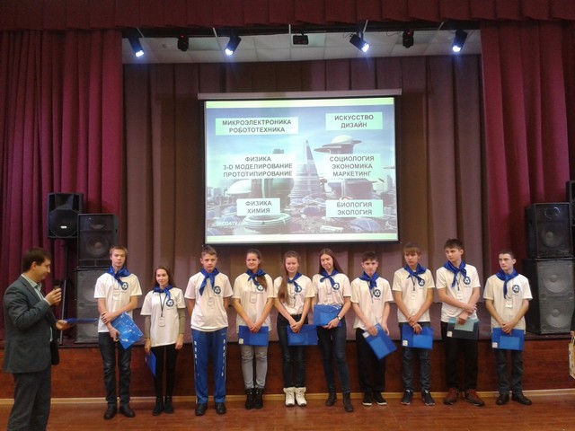 Наши ребята вступили в корпорации «Физика.3D моделирование. Прототипирование. Дизайн» (Любушкин П., Ряпцев Н., Высотин М., Вележанин А., Штыков И.), «Программирование. Микроэлектроника. Робототехника» (Сергеев Г., Истомин К.), «Физика. Химия» (Галаган А., Топорков Н., Верховцев Н.). На работу было выделено четыре дня и надо было успеть многое: разобраться с оборудованием, оформить работу и защититься публично.