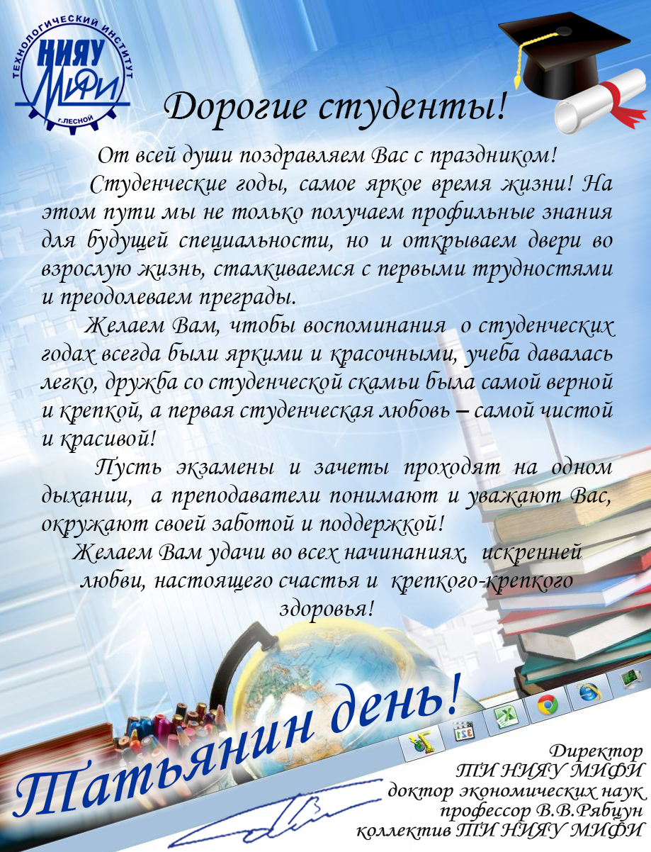 Поздравление директора ТИ НИЯУ МИФИ В.В. Рябцуна с днем студента!
