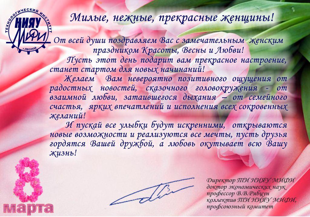 Поздравление директора ТИ НИЯУ МИФИ с 8 Марта!