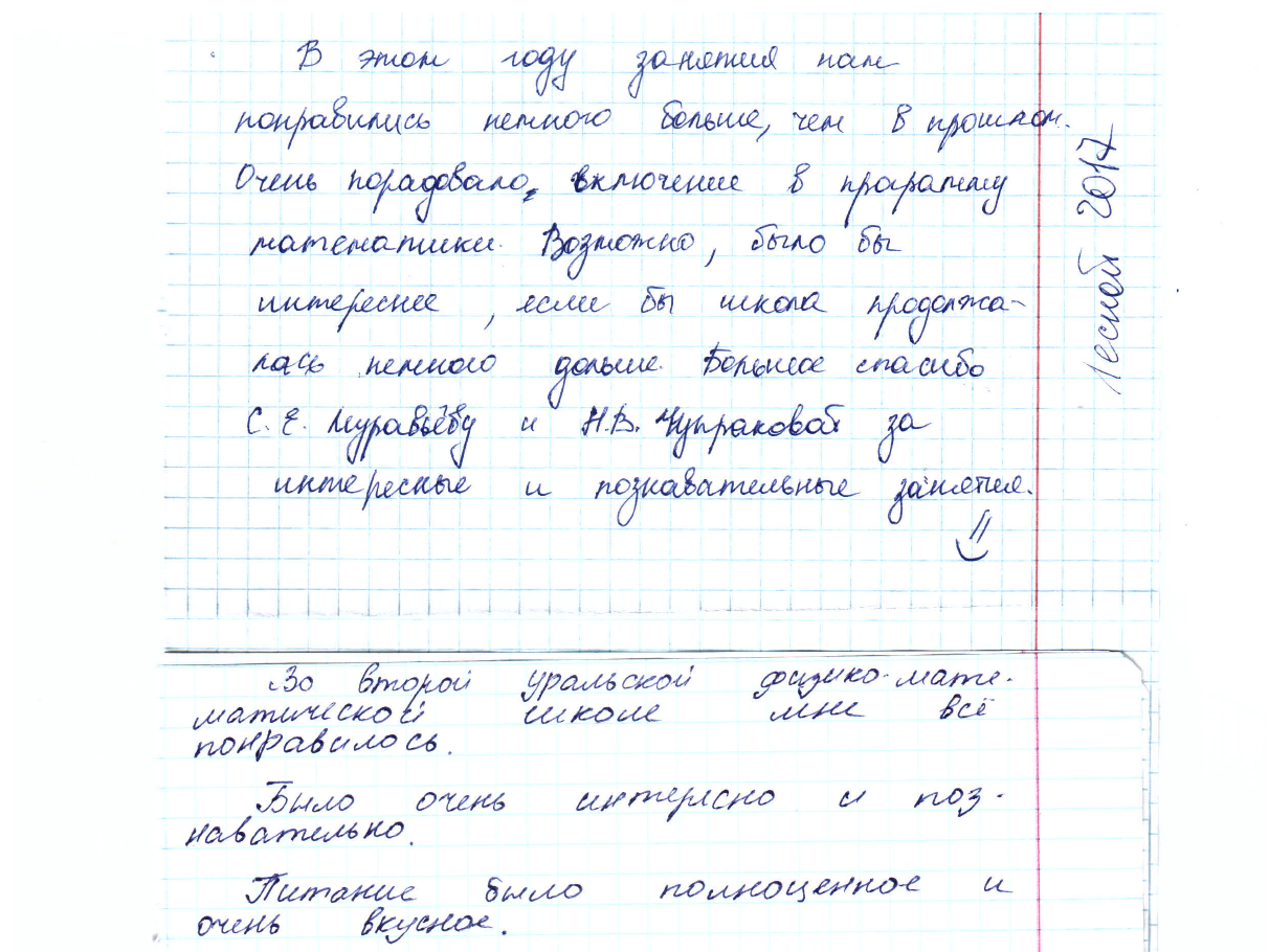 II Уральская физико-математическая школа, прошедшая в Лесном, показала отличные результаты, школьники оставили положительные отзывы и планируют приехать вновь в следующем году.