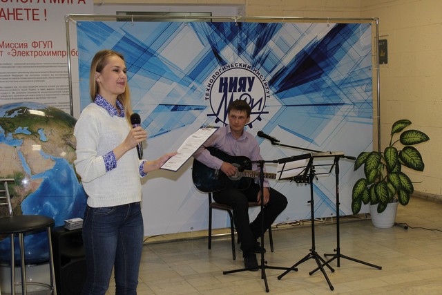 Начался концерт: песни Визбора, Окуджавы, Высоцкого и многих других известных бардов прозвучали в этот день. Среди исполнителей были не только студенты института – будущие инженеры и работники градообразующего предприятия ФГУП «Комбинат «Электрохимприбор», но и преподаватели – пример успешной карьеры инженера — наставника, не лишенного романтики покорения вершин и туристических походов. Душевная, теплая дружественная атмосфера объединила всех, ветераны института и комбината вспомнили свою молодость, более молодое поколение погрузилось в романтику бардовской песни…
