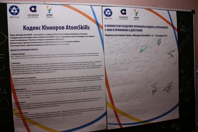 С 12 по 18 ноября в городском округе «Город Лесном» на базе Технологического института НИЯУ МИФИ состоялась Первая Проектная инженерная школа для талантливых школьников «Юниоры AtomSkills». Организаторами смены стали Корпоративная академия Росатома, Технологический институт НИЯУ МИФИ и Московская площадка НИЯУ МИФИ, а также ЦМИТ академия (г. Москва). Большую помощь в проведении смены оказали администрация городского округа «Город Лесной», ФГУП «Комбинат «Электрохимприбор», Управление образования и Отдел культуры администрации городского округа «Город Лесной», санаторий-профилакторий ‘Солнышко’.
