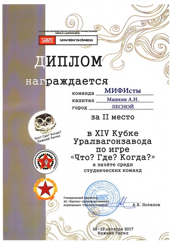 28 и 29 октября в Нижнем Тагиле на базе Дворца культуры им. И.В. Окунева состоялся XIV Кубок Уралвагонзавода по игре ‘Что? Где? Когда?’.