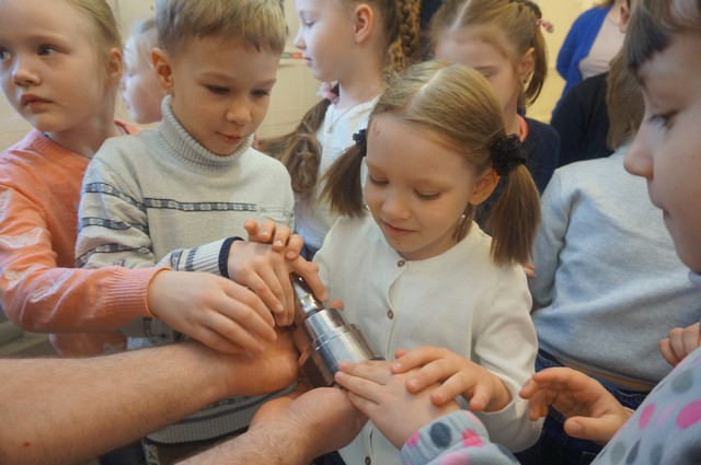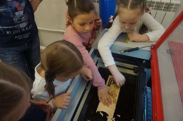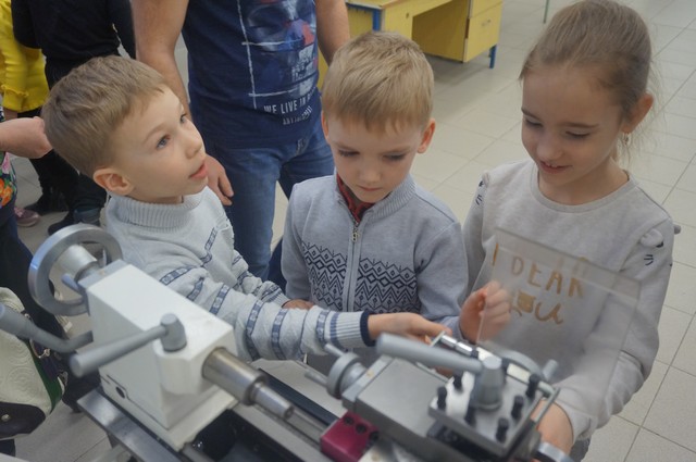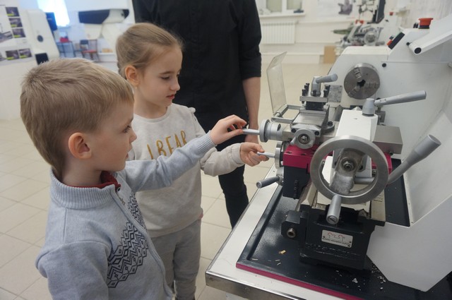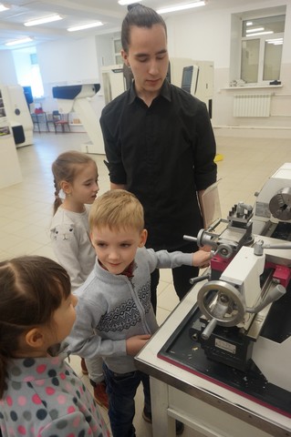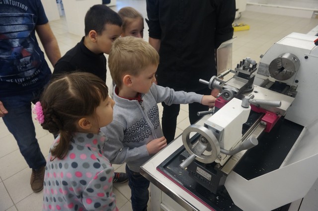 «Маленькая» экскурсия спустилась в институтское «подземелье» — центр станков с числовым программным управлением (ЧПУ), где проследила процесс изготовления деталей и с помощью начальника учебно-производственного центра вырезала затейливые узоры на лазерном станке. Завершилась экскурсия в новеньком спортивном зале «МИФИтнес», где каждый смог «размяться» на тренажерах, попрыгать на мячах, а потом получить на память воздушный шар и браслет с надписью: «Я люблю МИФИ!».