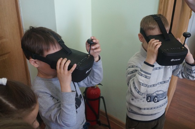 Далее была лаборатория кафедры Технических систем контроля управления (ТСКУ), где ребята «запускали поточную линию производства», управляли роботами, вооружившись 3D очками, и даже устроили гонки в коридоре института.