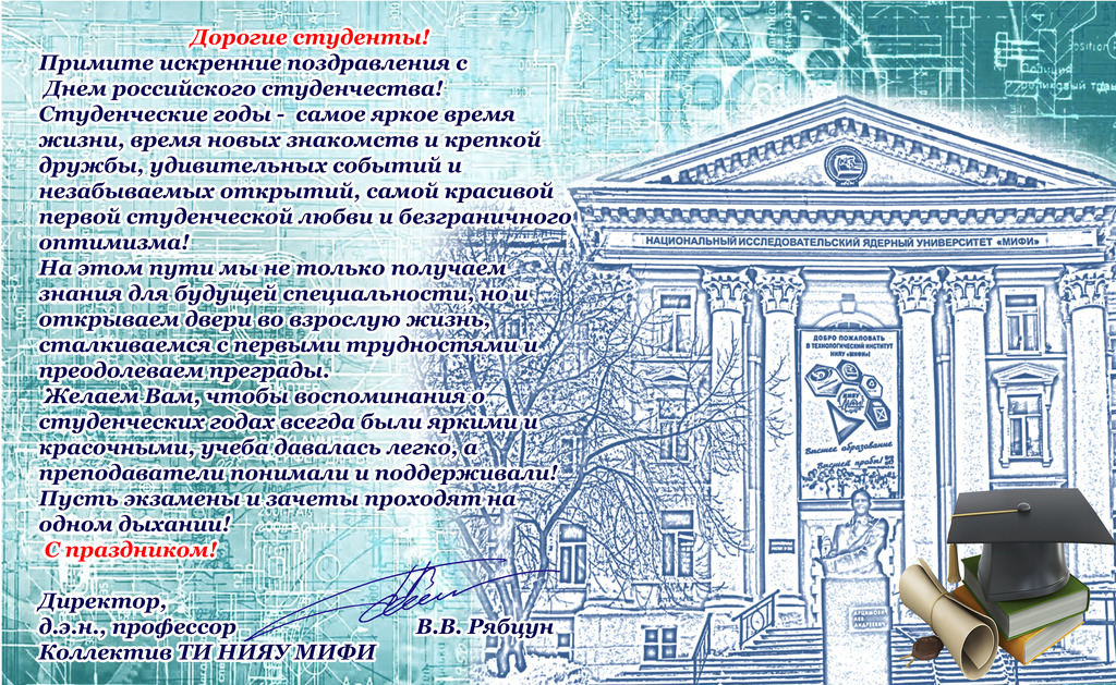 Поздравление директора ТИ НИЯУ МИФИ В.В. Рябцуна с Днем студента!