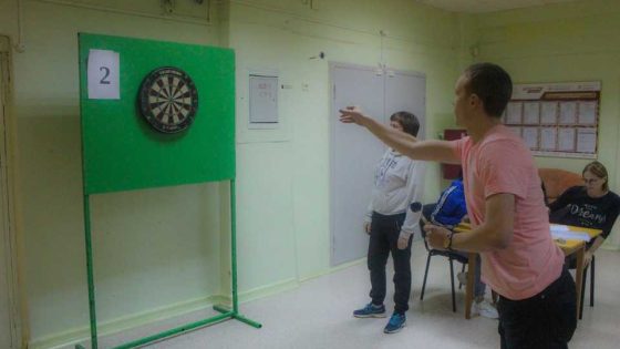 МИФИсты захватив дротики, хорошее настроение, соревновались с другими командами за право первенства по Дартсу.
