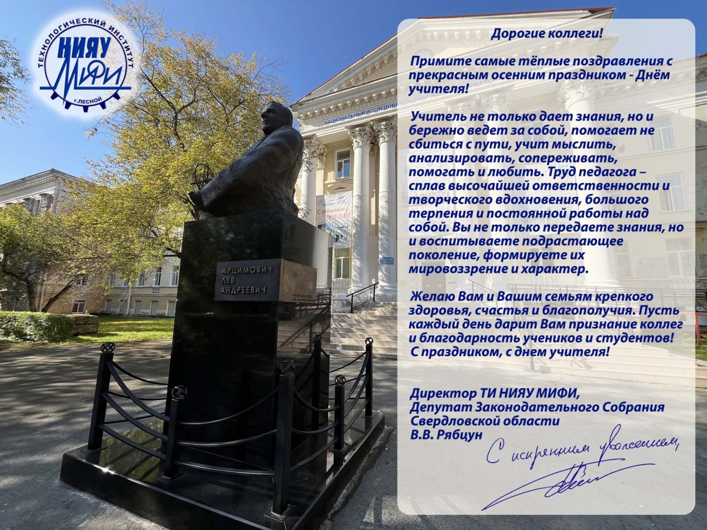 Поздравление с Днём учителя от директора ТИ НИЯУ МИФИ В.В. Рябцуна