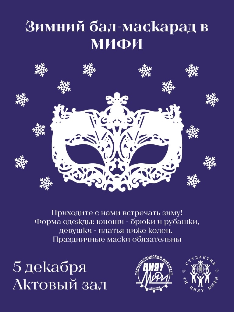 Не пропустите самое яркое событие этой зимы! Зимний бал ТИ НИЯУ МИФИ ждет вас! ✨