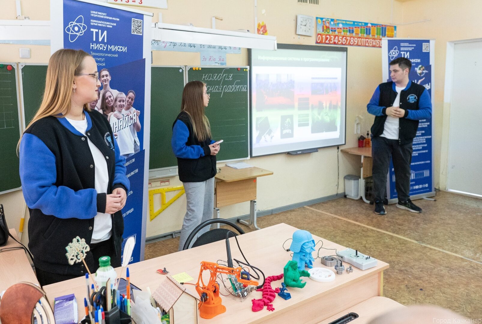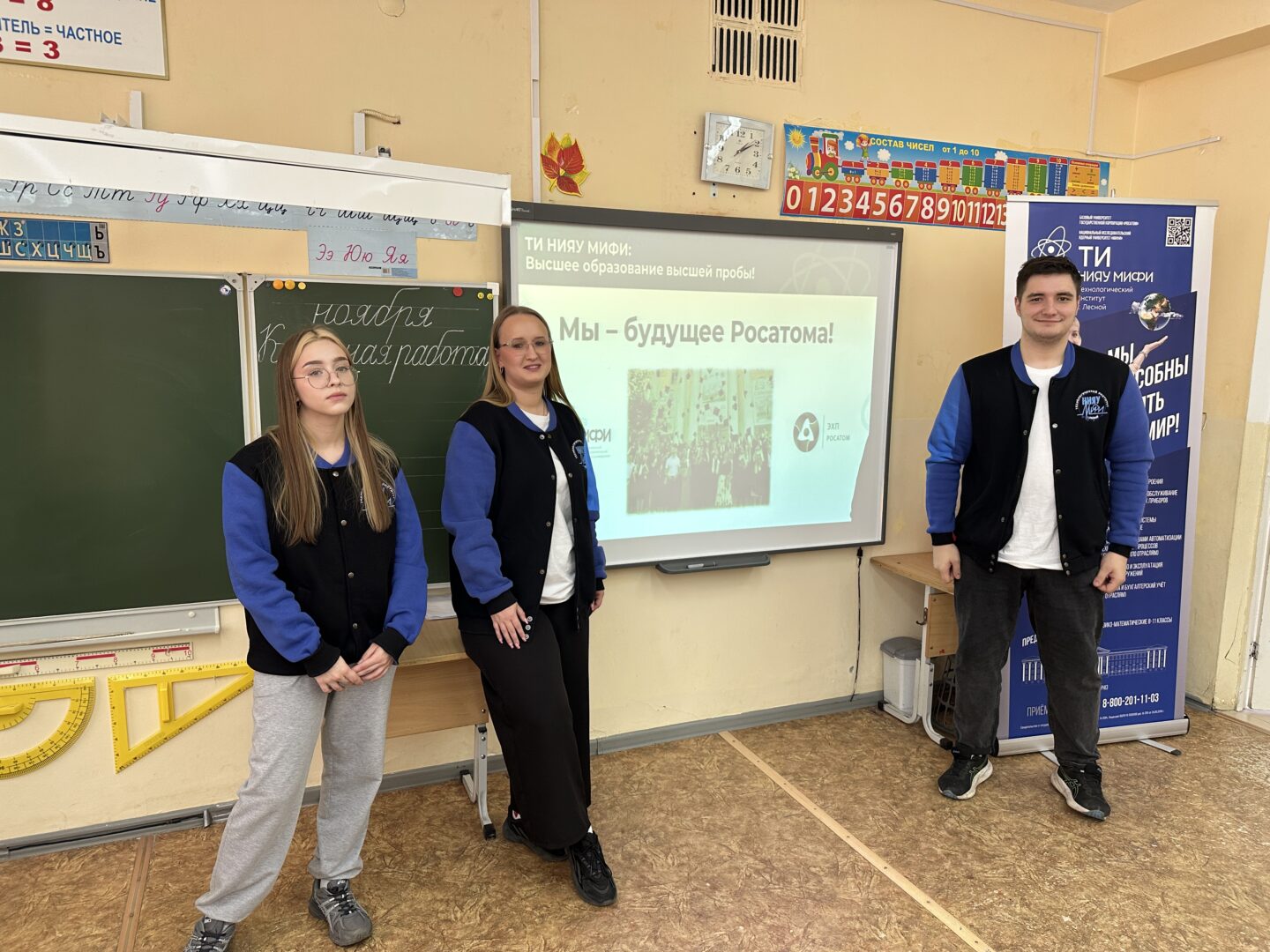 Студенты ТИ НИЯУ МИФИ подробно рассказали о материально-технической базе института, возможностях прохождения дуальной практики на градообразующем предприятии ФГУП «Комбинат «Электрохимприбор», о комфортных условиях обучения и проживания. Будущие абитуриенты также узнали о направлениях подготовки среднего профессионального образования. Важным элементом презентации стало знакомство с масштабной концепцией научно-образовательного кластера «Уральский атом». Эта инициатива позволит выстроить непрерывную образовательную траекторию — от школы до предприятия, обеспечивая подготовку высококвалифицированных кадров для атомной отрасли. В ходе живого и непринужденного общения студенты ТИ НИЯУ МИФИ ответили на все интересующие вопросы.