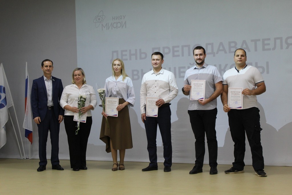 Сегодня в Технологическом институте НИЯУ МИФИ прошла церемония награждения, которую провели директор ТИ НИЯУ МИФИ Владимир Васильевич Рябцун и генеральный директор ФГУП «Комбинат «Электрохимприбор» Сергей Альбертович Жамилов. За большой личный вклад в развитие образовательной и научной деятельности преподавателям и сотрудникам Технологического института были вручены почетные грамоты и благодарности, а также медаль «За вклад в развитие НИЯУ МИФИ». Мероприятие украсили яркие творческие номера, подготовленные обучающимися ТИ НИЯУ МИФИ.