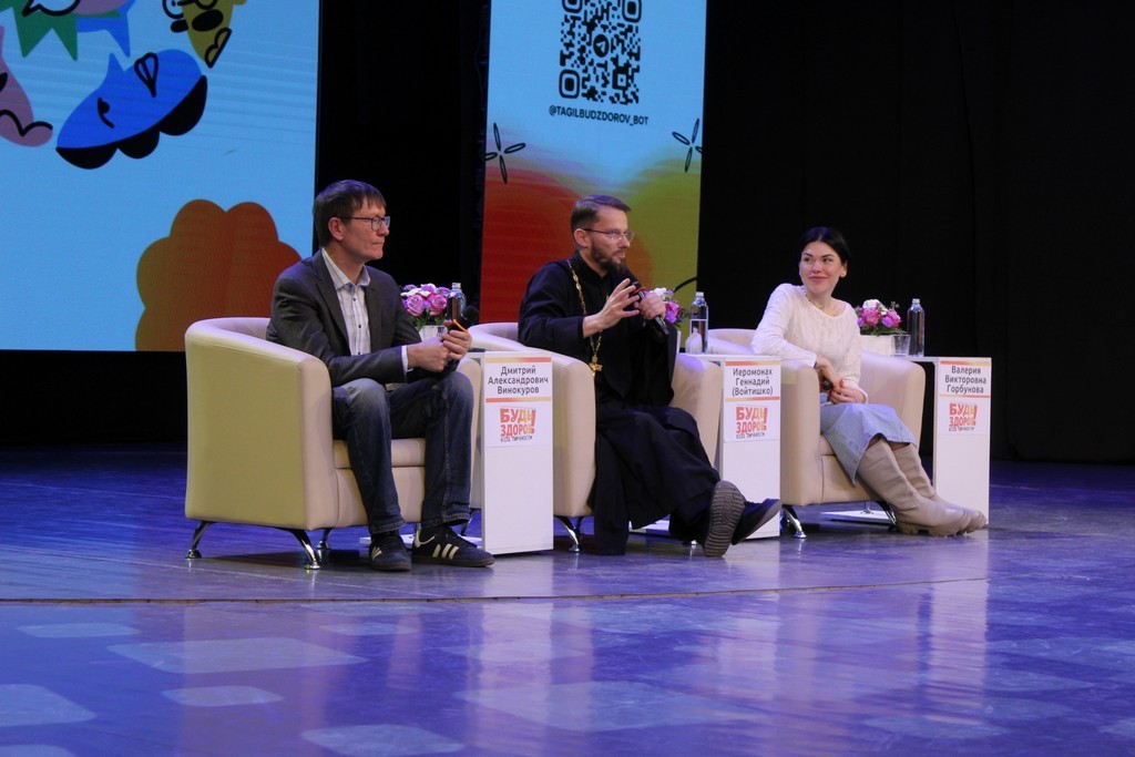 Особое внимание студентов привлекла открытая дискуссия на тему «Что такое личность?», которую провел ведущий Матвей Кипнис, руководитель видео-направления журнала «Фома». Участниками разговора также были руководитель сектора приходского просвещения Синодального ОРОиК РПЦ Иеромонах Геннадий (Войтишко), врач-психиатр, семейный консультант, директор Центра семейной терапии Дмитрий Александрович Винокуров и заместитель директора Нового молодёжного театра Валерия Викторовна Горбунова.