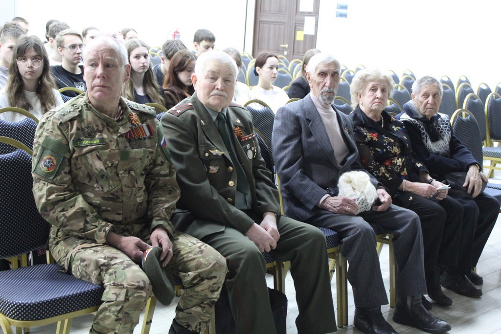 Почётными гостями встречи стали ветераны боевых действий общественной организации «Дети войны» (председатель – Мелентьева Тамара Евгеньевна). Их выступления были живым свидетельством мужества, стойкости и верности долгу. Ребята смогли услышать личные истории, задать вопросы и прикоснуться к памяти поколений, для которых слова «честь» и «служение Отечеству» наполнены реальным смыслом. Ведущей мероприятия выступила Айдочкина Валентина Викторовна, создавшая атмосферу уважительного и искреннего диалога.