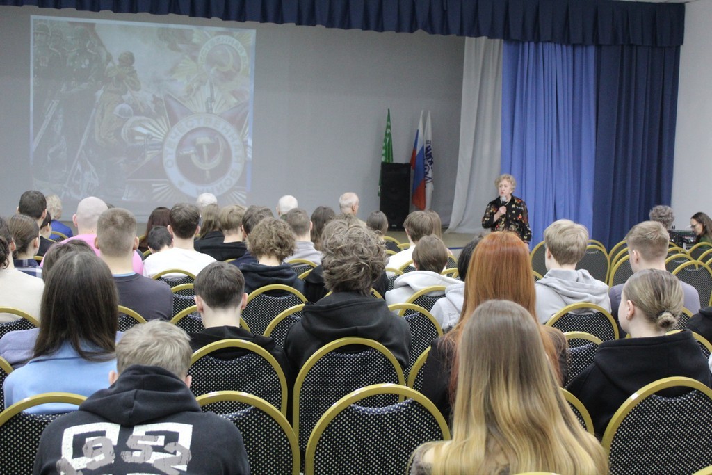 19 февраля, накануне Дня защитника Отечества, в Технологическом институте НИЯУ МИФИ для учащихся 10-х классов Предуниверситария прошло патриотическое мероприятие «Отвага дедов и отцов – в сердцах мужающих сынов». Встреча поколений была организована Центральной городской библиотекой имени П.П. Бажова.