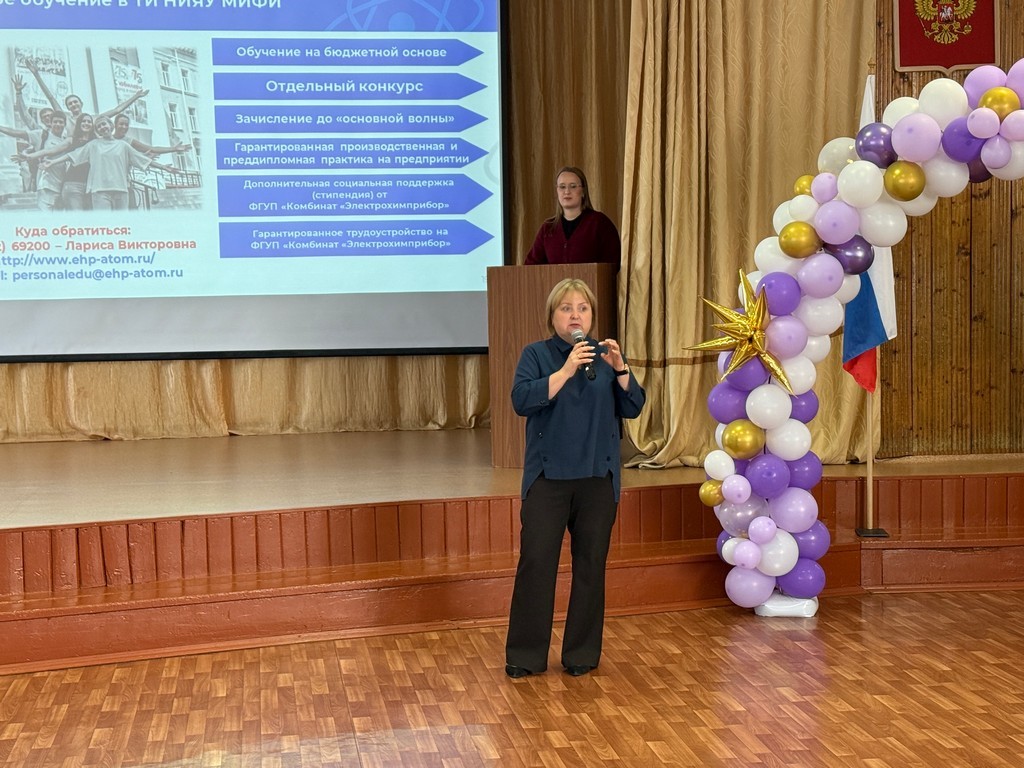 Заместитель директора Технологического института Заляжных Лариса Викторовна подробно осветила возможности целевого обучения и сроки предстоящей приёмной кампании. После официальной части к Ларисе Викторовне подходили не только старшеклассники, но и их родители. Взрослых интересовали вопросы безопасности в закрытом городе, а также условия проживания в общежитиях.