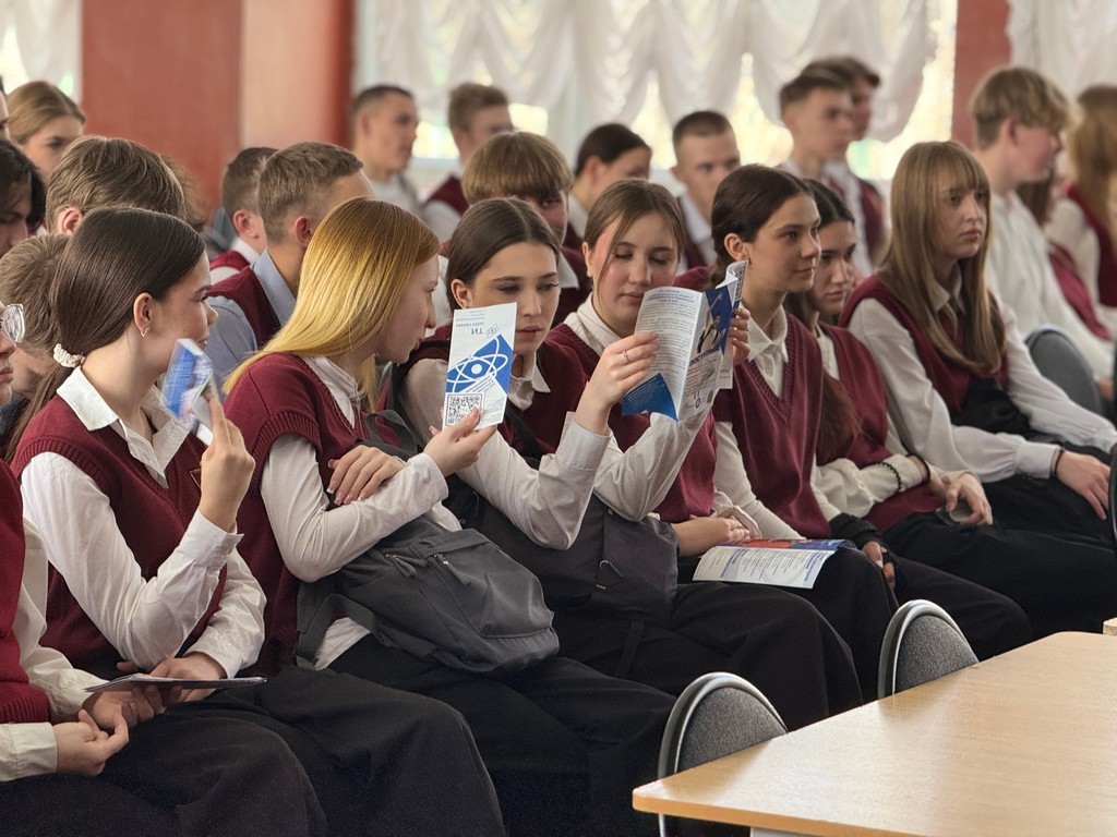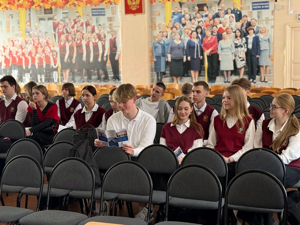 Важной частью встречи стало выступление Михайдаровой Анны Юрьевны, специалиста по подбору персонала ФГУП «Комбината «Электрохимприбор». Она доступно объяснила школьникам как ещё до поступления в вуз заключить договор с предприятием, какие бонусы это даёт (дополнительная стипендия, гарантированная практика на производстве и трудоустройство сразу после выпуска).