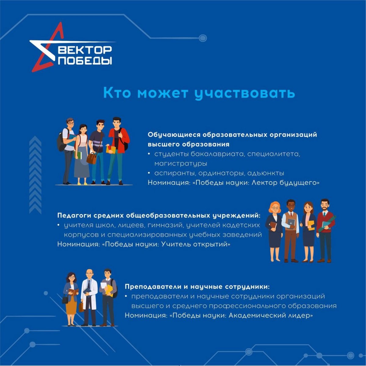 До 30% лучших — получат дипломы, призы, а также возможность стать частью Интерактивного лектория «Победы науки» и выступить на фестивале «Вектор.Фест» в качестве амбассадоров просветительской миссии.